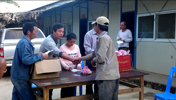 項(xiàng)目管理人員給越南員工送上春節(jié)禮品和慰問(wèn)金