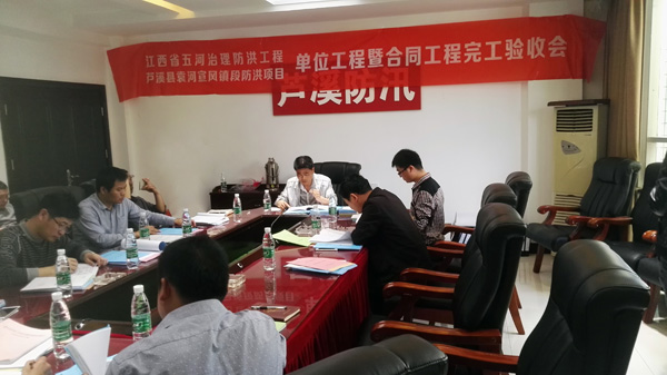 2017年4月19日蘆溪縣五河治理防洪工程項(xiàng)目部在蘆溪縣主持召開了江西省五河治理防洪工程蘆溪縣袁河宣風(fēng)鎮(zhèn)段防洪項(xiàng)目單位工程暨合同工程完工驗(yàn)收會(huì)議。蘆溪縣五河治理防洪工程項(xiàng)目部、江西省水利規(guī)劃設(shè)計(jì)研究院、江西省建洪工程監(jiān)理咨詢有限公司、江西省水利水電建設(shè)有限公司、蘆溪縣宣風(fēng)鎮(zhèn)鎮(zhèn)人民政府和銀河鎮(zhèn)人民政府等單位代表參加了本次驗(yàn)收會(huì)議,并成立了單位工程暨合同工程完工驗(yàn)收工作組,萍鄉(xiāng)市水工程建設(shè)監(jiān)督管理站列席了本次會(huì)議。