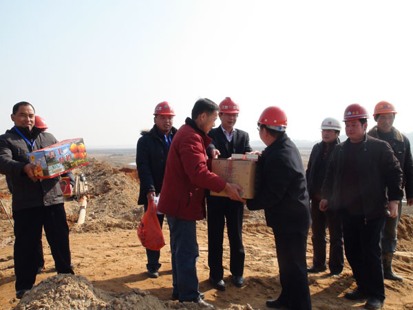 2011年2月3日,年初一上午,省河湖局郭澤杰局長一行到垂直防滲4標親切看望并慰問項目部人員。我司董事長總經(jīng)理王元旦、上饒市水利水電工程建設(shè)監(jiān)理中心總經(jīng)理聶道淵等陪同慰問。